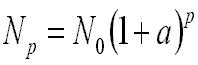Les variables des formules du type {Np=No* (1+a) } sont discontinues. Les graphes images seront cependant tracés en mode continu, sous la forme :
