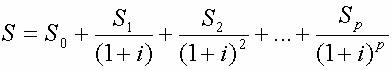 {06} : {S=So+S1/ (i+i)+S2/ ( (1+i)^2)+…+Sp/ ( (1+i))}, soit