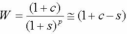 On calcule donc les nouveaux taux par des différences ou additions des anciens. Ce procédé semble approximatif, mais il est en réalité rigoureux dans le monde continu et non discontinu qu'est le monde réel. Il suffit en effet de remplaçer a par {a1=ln (1+a)} et {p} par l'époque {t} ; en continu {s} devient {exp (s1*t)} et {w} devient {exp (c1-s1)*t} très exactement. Le taux résultant est bien {c1-s1} exactement. Le remplacement des modèles discontinus par des modèles à temps continu donne souvent une bien plus grande puissance aux études, mais il ne faut le faire que quand on est très familiarisé avec les méthodes économiques.